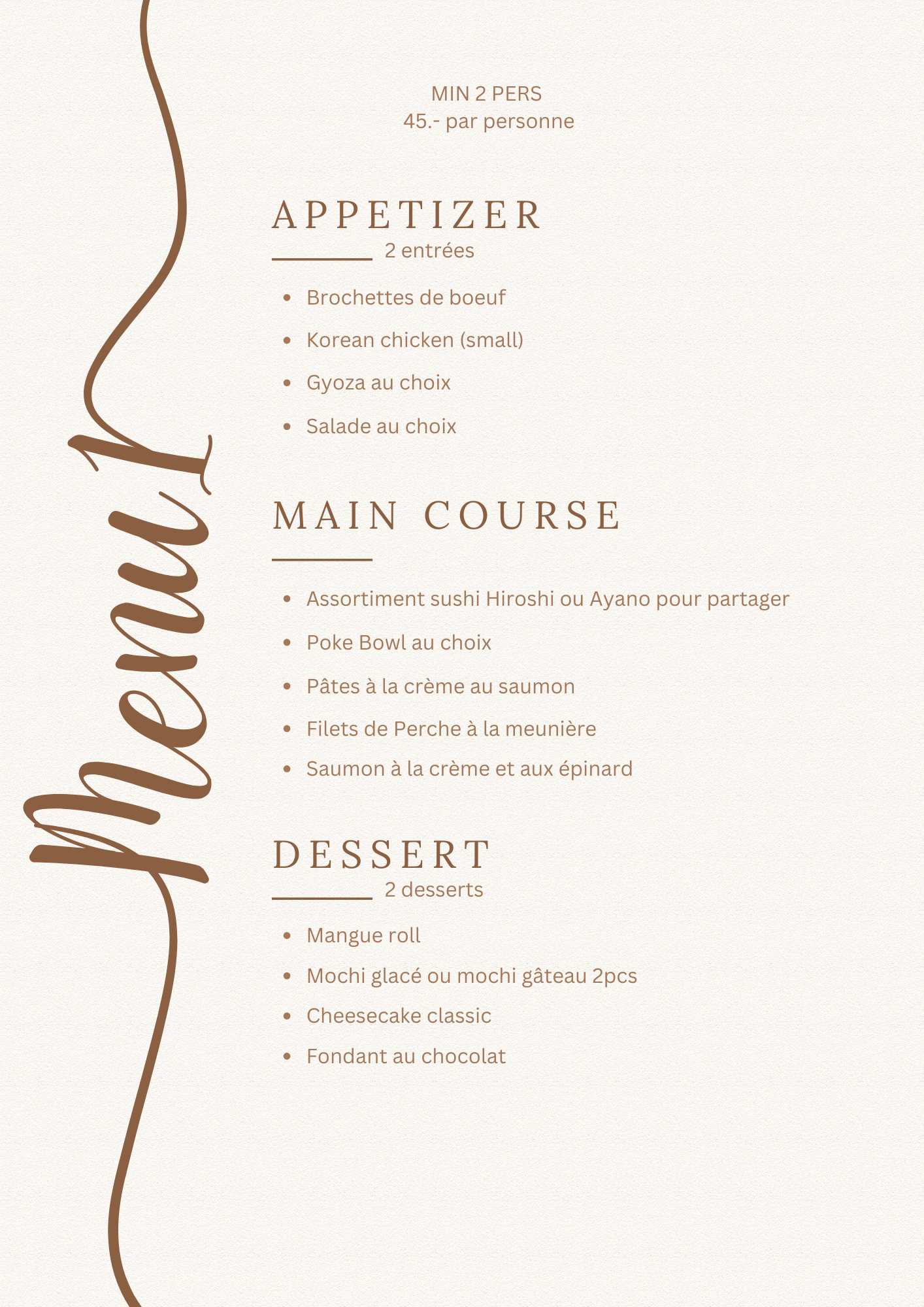 Nous vous donnons volontiers des informations détaillées sur la présence possible d'allergènes dans les plats du menu. En cas d'allergie ou d'intolérance, veuillez-vous adresser à notre personnel qui vous renseignera volontiers.